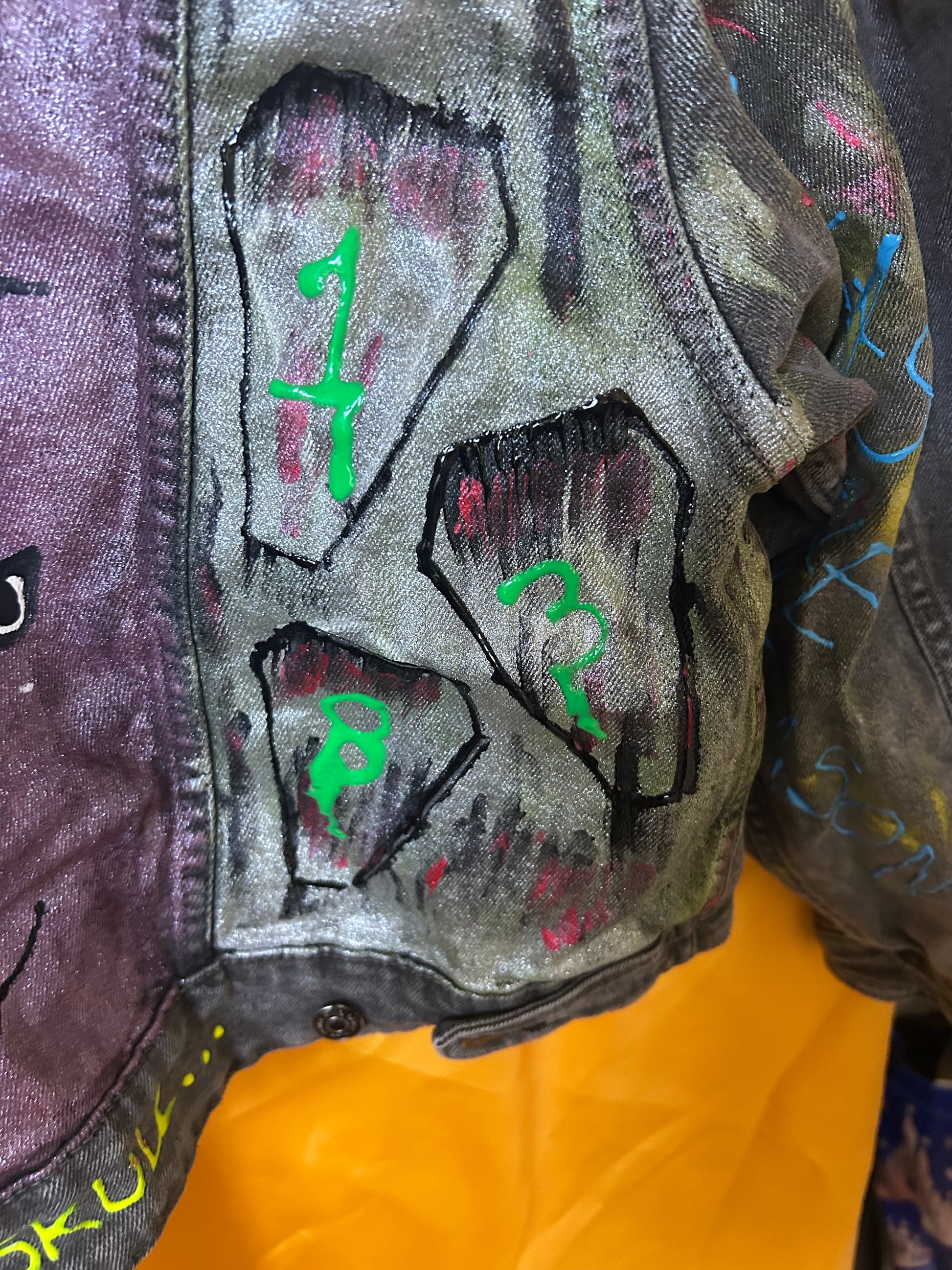 Hand-Painted Punk Denim Jacket – “Horror Business”