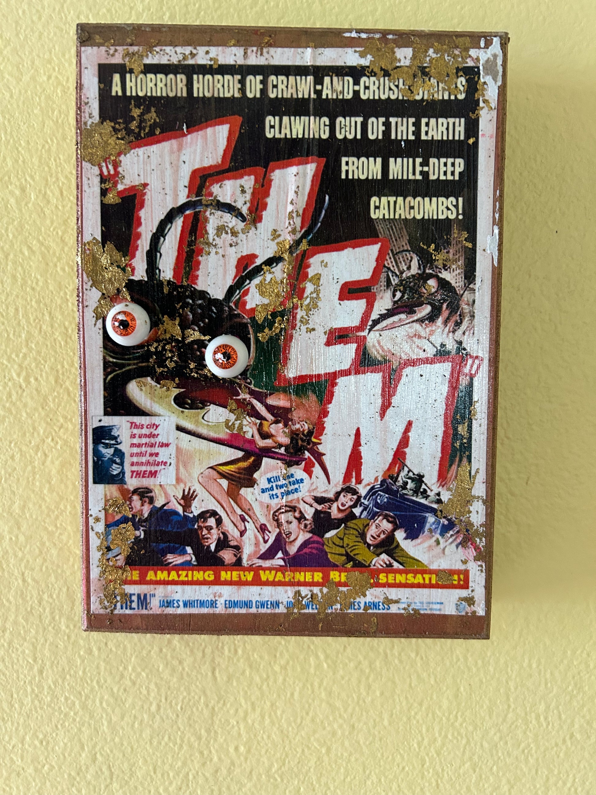 🪳 Original THEM! poster decoupage on wood plaque