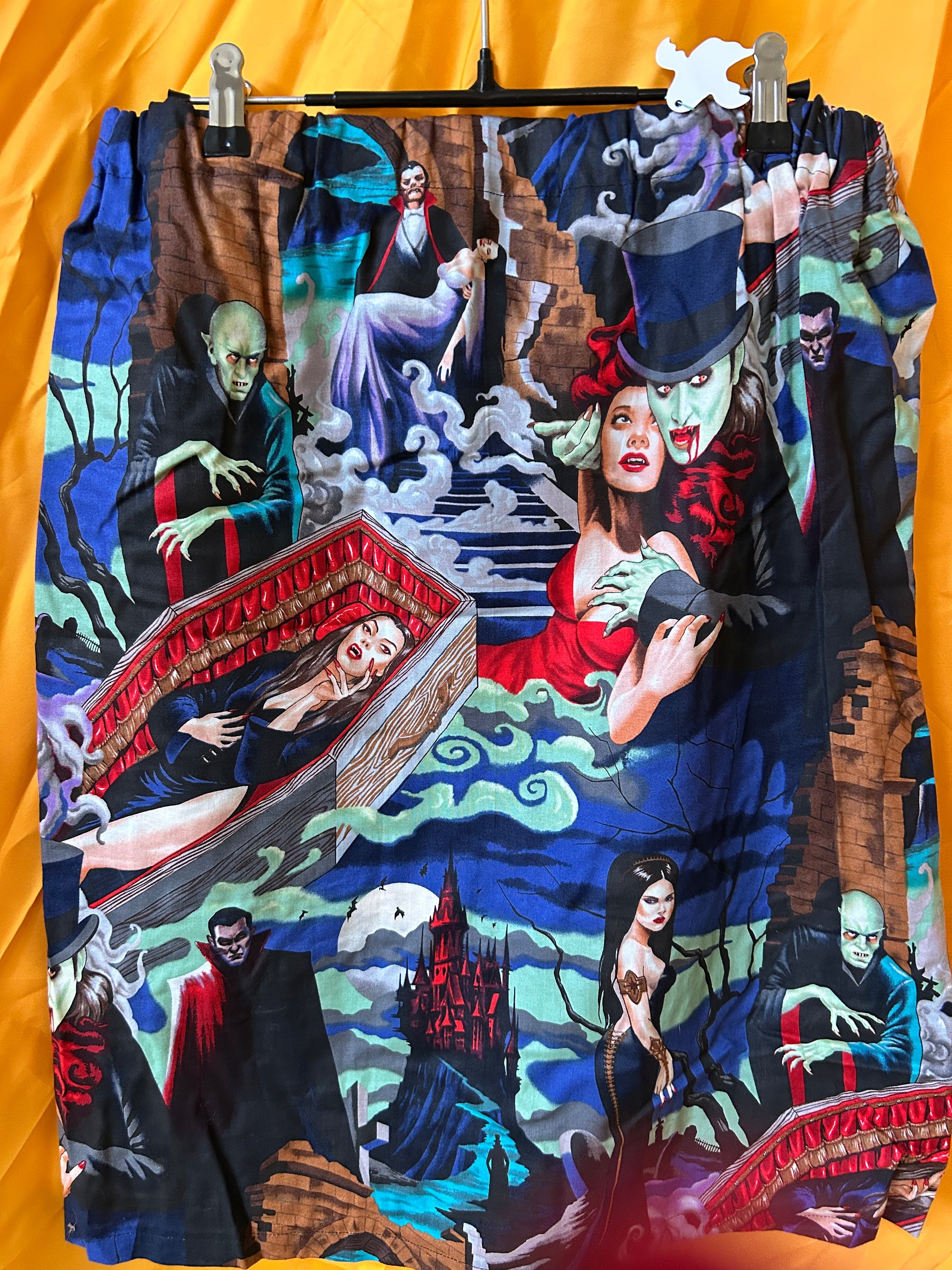 Retro Horror Vampires Skirt – Handmade Elastic Waist Goth Skirt